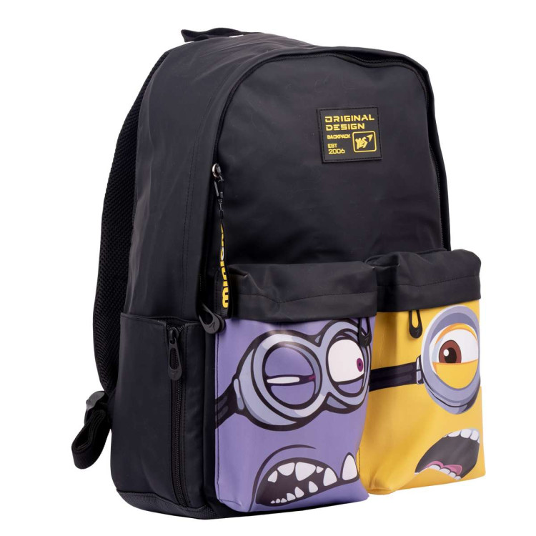 Шкільний рюкзак YES, одне основне відділення, дві фронтальні кишені на замку, дві бічні кишені, ущільнене відділення для гаджетів, органайзер, світловідбивні елементи, розмір: 46*31*15 см, чорний Minions.